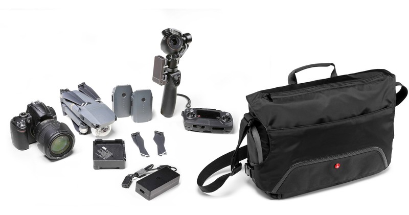 Зеркальная фотокамера с установленным объективом, дрон DJI Mavic Pro (дрон, контроллер, две батареи и зарядное устройство) и стабилизатор DJI Osmo.