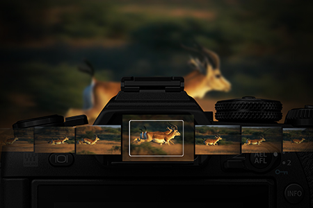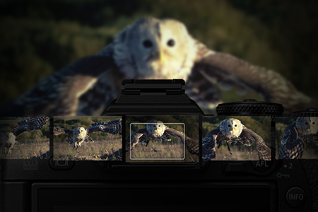 Благодаря полю отслеживания объекта, показываемому непосредственно на дисплее, в режиме следящего автофокуса стало гораздо проще сосредоточиться на движущемся объекте съемки.